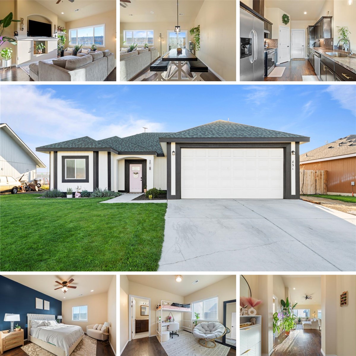 Welcome to this contemporary 4-bedroom, 3.5-bath home in desirable Connell. Built in 2017, this well-maintained residence offers 1,620sq ft of comfortable living space and sits on a 6,098 sq ft lot. Step inside to find an open-concept layout with vaulted ceilings, abundant natural light, and a thoughtful flow between living areas. The kitchen features a breakfast bar, stainless-steel appliances, and easy access to the backyard — perfect for indoor/outdoor entertaining. The primary suite includes a private bathroom, and the additional bedrooms are generously sized. A 3.5 bathroom configuration ensures comfort and convenience for everyone! Outside, enjoy a fenced backyard ideal for pets, kids, or relaxing under the open sky. Parking is easy with an attached 2 car garage and RV parking to the side. Situated in a growing community, this home is close to schools, amenities, and offers easy commuter access. With quality finishes, smart layout, and modern conveniences, this is a great opportunity to own a move-in ready home in Connell.